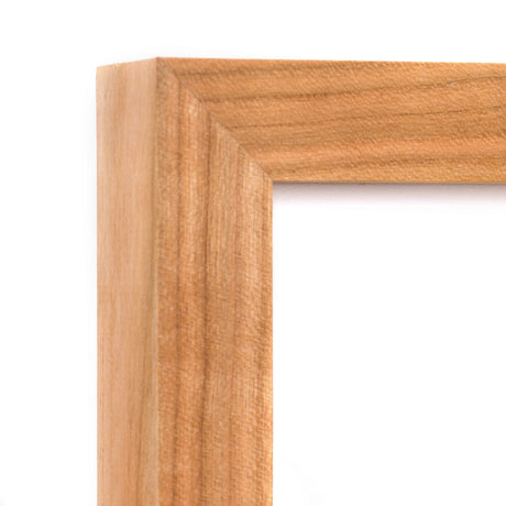This solid Cherry wood frame's natural variation is plentiful—its rich tones range from a light red to a true blonde—and its sweeping grain is brought out by a matte wax finish. The thin profile and warm color makes it a perfect choice for art and photos (especially ones with green)!